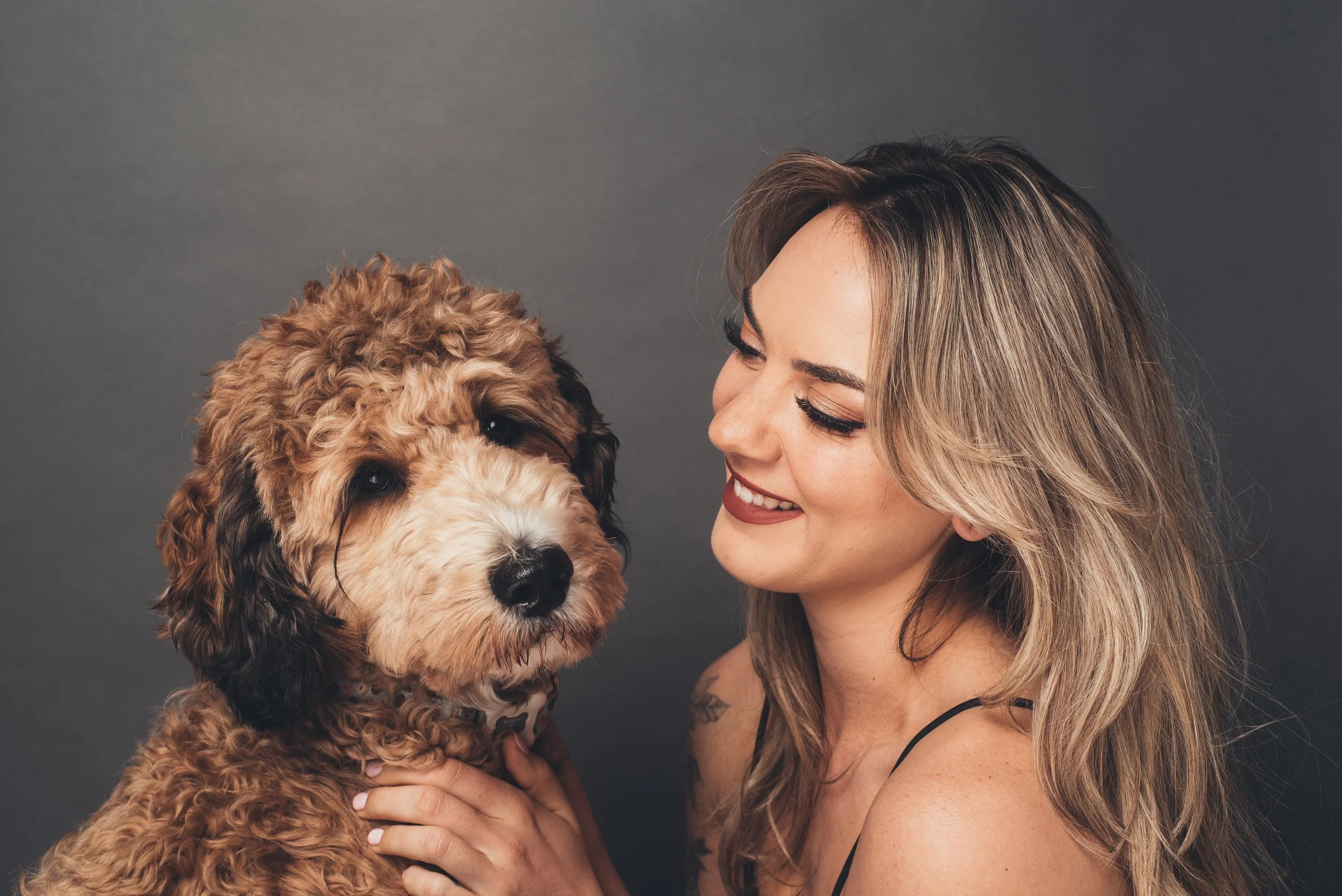 By my side is my beloved Bernedoodle, Finley, who mirrors my personality and charms everyone she meets.